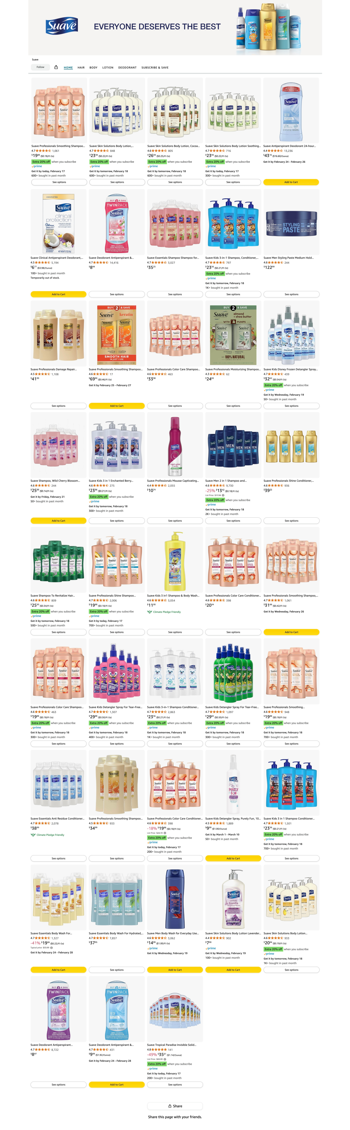 Aligned copy, tone, and visuals with Suave’s refreshed brand guidelines across the Storefront and A+ modules.